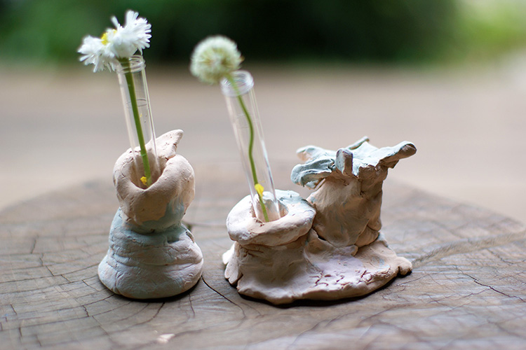 小学生以上の子どもたちには一応「心に花を」というテーマを設けてみました。どこかに試験管を差せる場所をつくっておいて、そこに花を一輪生けることができるよ、というものです。