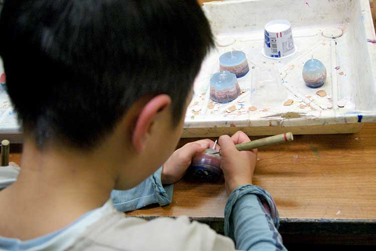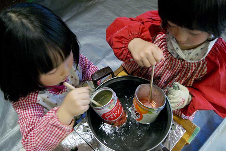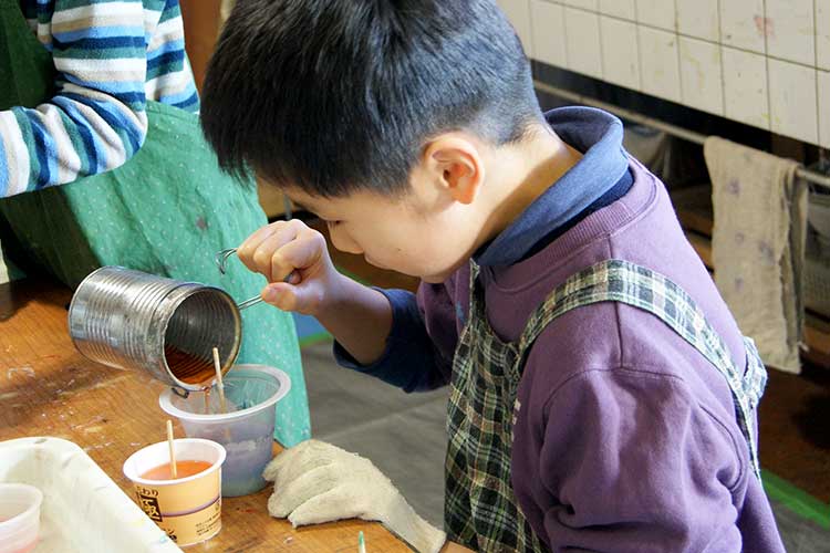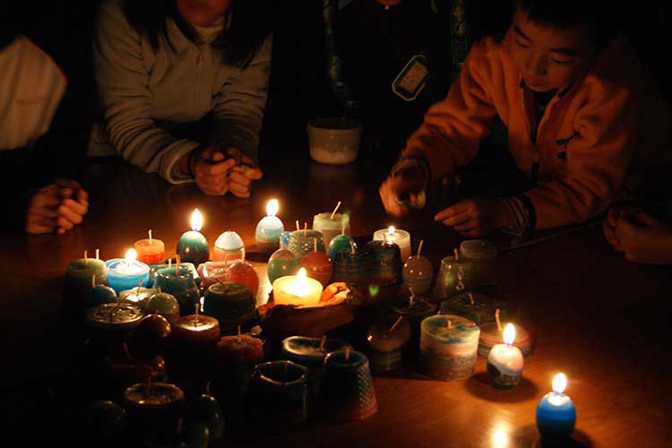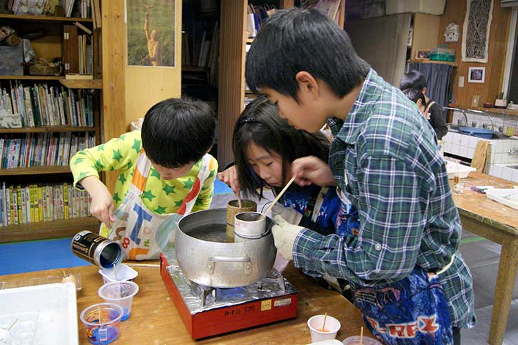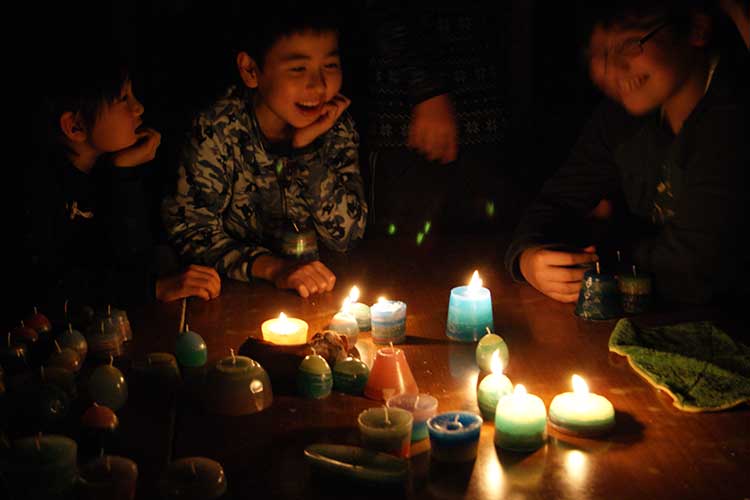 ローソクづくりは毎年12月の恒例なので前からいる子どもたちは勝手知ったるかんじで、もう説明を聞くのももどかしい様子でスタートしました。3人一組で熱いお鍋を囲むので私とスタッフは終始気が抜けませんが、子どもたちは心は興奮しながらも態度はすごく慎重に、3歳から18歳までみんなちゃんと無事に出来ていました!