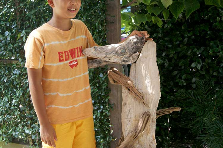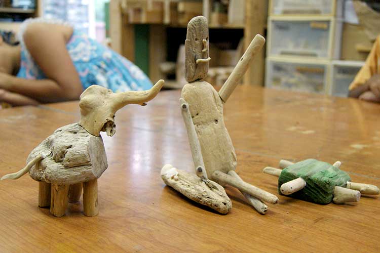 8月1日から毎日大量の流木、汗まみれの子どもたちに囲まれて「なつやすみフリーデイ」をやっています。まだ25日まで終わりませんが、今日は中間報告です。前半の作品から数点載せさせていただきますね。(全部ステキなのですが