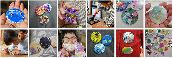 2023年3月についにかんバッジマシーンを購入しました!私も子どもたちも嬉しくって台紙に塗ったり貼ったりいろんな楽しみ方をしました。(メーカーの説明書には禁止されている事も‥?)どうしても推しの切り抜きを入れたい女子にも「それだけじゃダメよ〜」と何か一工夫してもらいました。こうして出来たオリジナルデコレーションバッジはまさに世界にひとつです。これ付けて推しのライブにも行ってほしいなぁ。