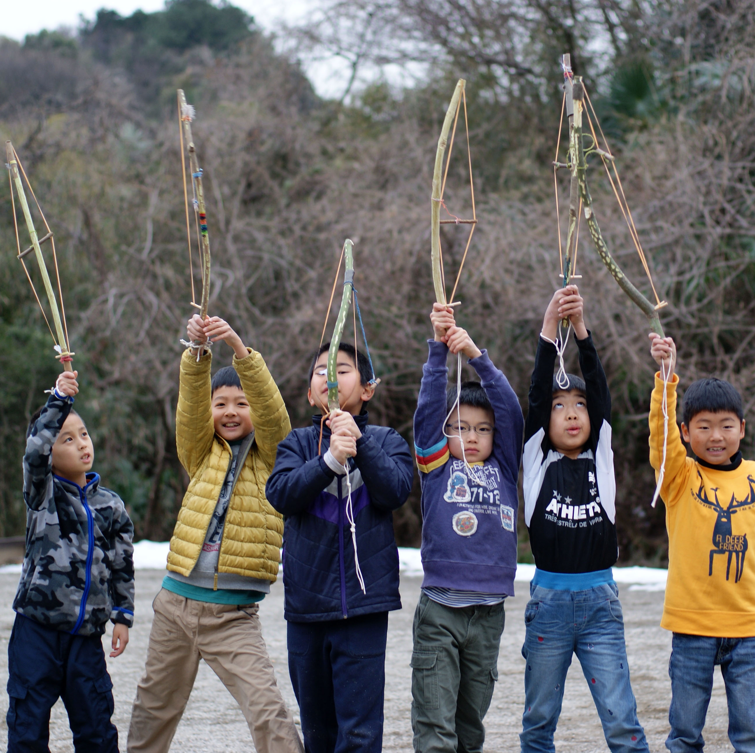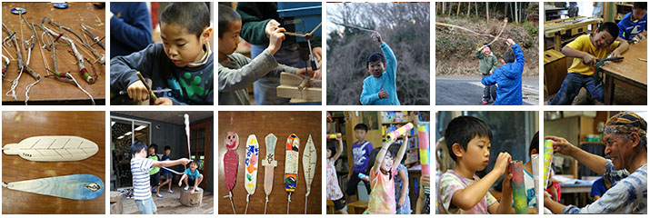 我が家の友人夫妻である旅の音楽家の丸山祐一郎とはるこさんには過去に何回もスペシャルゲストで来ていただいています。丸山さん考案の「水カンリンバ」は水の音に心が静まる不思議な楽器。他にも森の木でつくるビリンバウやスピリッツキャッチャーなどを伝授してくれました。「うなりぎ」は関根秀樹さんの本を見てにいはるびじゅつバージョンで自由な形に。ウィーンと響く太古の音に血が騒ぐのは野性的な男の子たち?