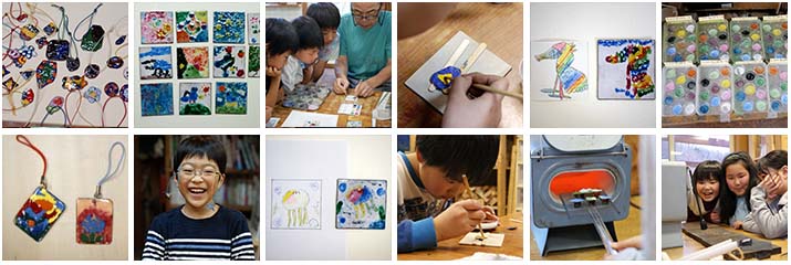 お隣の部屋ではいつもカミナリ先生が七宝の作品を創っていますから、道具も材料もすべて揃っています。数年に一度その道具と技術を提供してもらって小さな七宝焼をつくってきました。子どもたちが自分で銅板を切るところからやった年もあるし、カミナリ先生が裏焼までしっかり下準備した年もあります。普段出来ない体験だけに子どもたちの真剣度も違います。800度の電気炉から出て来た真っ赤な作品に「おお〜」と感動の声が‥