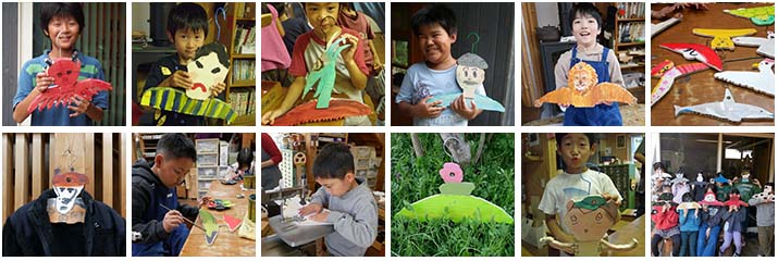 うちでは「じぶん〇〇」という名のテーマが多いですが、これはまさに自分の顔をしたハンガーですからね。でも自分の顔のハンガーは何故かいやがる子が多いので「好きなものでもいいよー」ということにしました。初期には針金を中で固定する為に顔と体は切り分けるやり方をしましたが、近年はまた別のやり方にしています。このハンガーたちが洋服を着ている(かけられて、ではありません)ところを想像するとたのしいです。