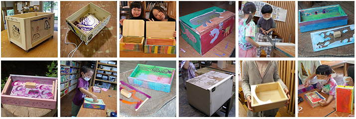 体験の日や自由せいさくで何をつくればいいか分からない子に私から「はこは?」と提案してみることがあります。箱は造りやすいし役に立ちますからね。小さな宝物箱から自分が入れるくらい大きなもの、キャスターをつけてゴロゴロ引っぱるものなどをみんなでつくった年もあります。いきなり「サッカーボールを8個入れるこんくらいの箱つくりたい」と両手を広げて言われても慌てません、一緒に板を探して長い道のりが始まります。