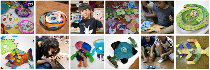 知り合いの田松昌三さんが昔デザインされたコマは円盤の真ん中が大きめの球体でした。これだったら小さな人や障がいのある人も回せるし、ある程度自由な形にもできる!ということで子どもたちとつくってみました(導入編でCDゴマをつくった年もあります)。かおゴマなべゴマひよこゴマかまきりゴマにファイヤーゴマなどどれもそれなりに回りました。紙の変身バージョンをつくってかぶせると更に楽しみ方が拡がります。