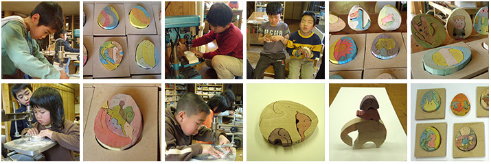 これは2008年のオリジナルくみきづくりのタイトルです。それまでは動物の親子などつくりましたが「たまご」の矩形の中にデザインするというハイレベルなものにしてみました。組み木デザイナーの小黒氏(スペシャルデイ参照)の特別講座に参加した子もそうでない子もその後何日もかけて完成にこぎつけました。