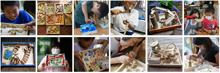 川和保育園という所のバザーではお父さんたちがつくった作品を販売する木工コーナーがあります。その看板商品だった竹迷路は子どもたちのあこがれ。メンバーOGのSさんに来ていただいて見本やつくり方を見せていただきました。一大奮起した子どもたちは時間をかけてすごい力作を生み出していきました。
